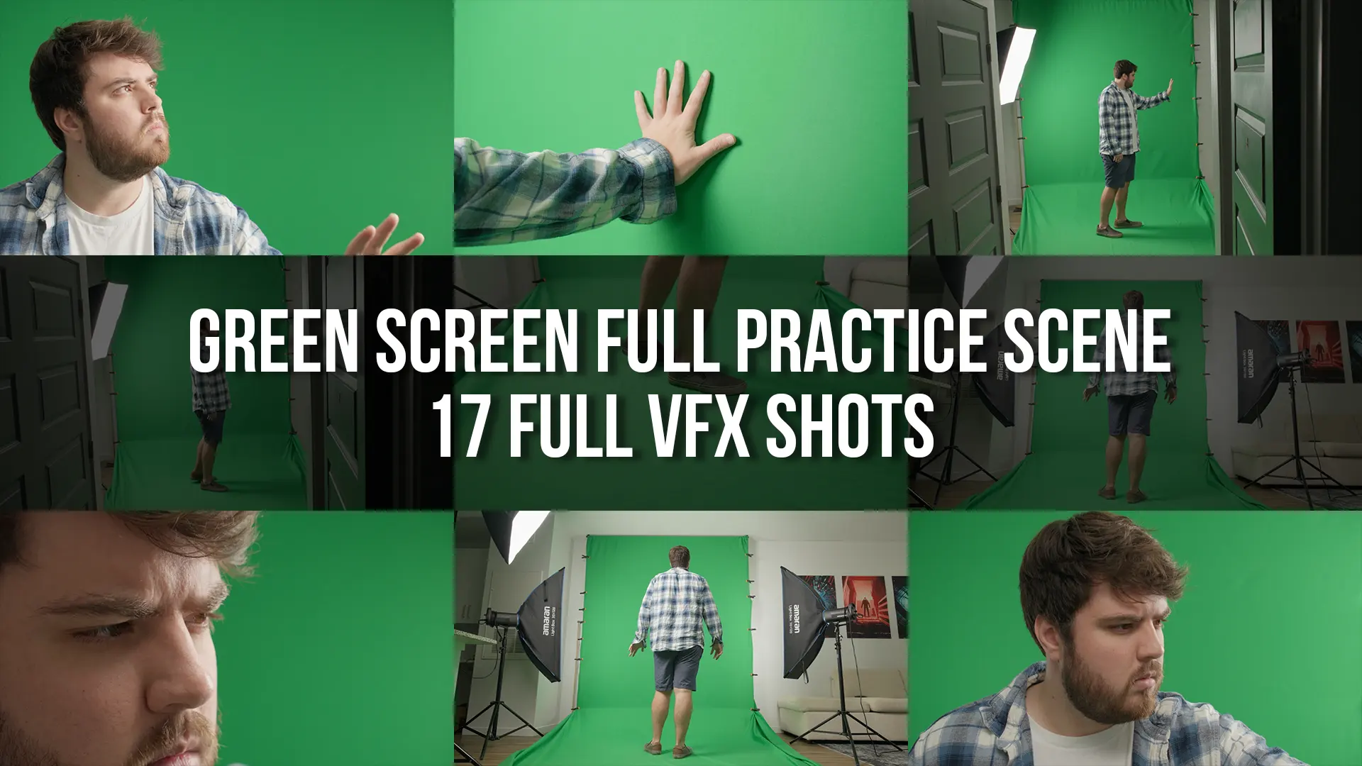 - 17 uncut green screen shots from a single scene