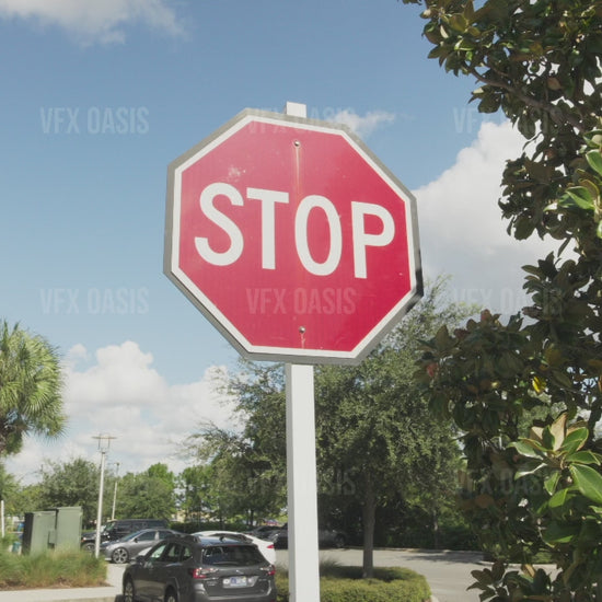 This shot of a stopsign is a great way to test your skills in cleanup and replacement. With heavy reflections and a few flares, you'll need to spend a little extra time removing everything to make everything look realistic. Once you master these types of effects, you can do anything in compositing.